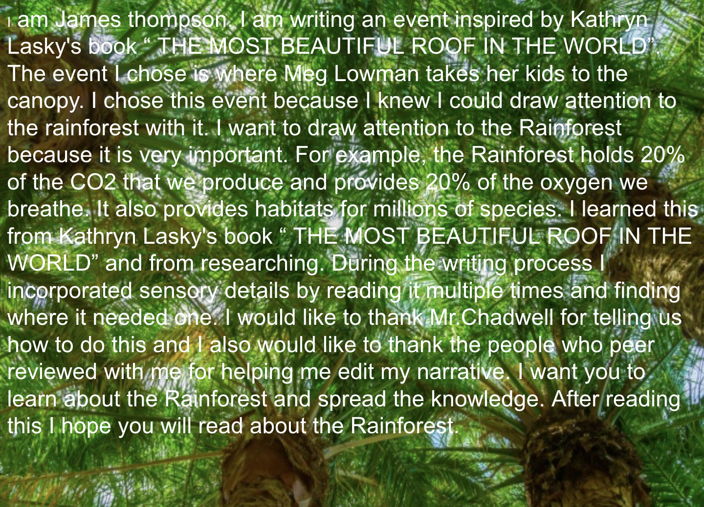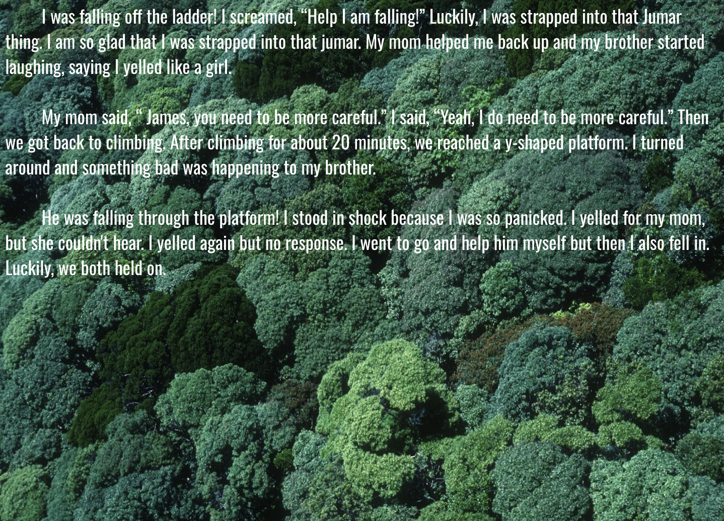 James and Edward Reach the Top of the Canopy